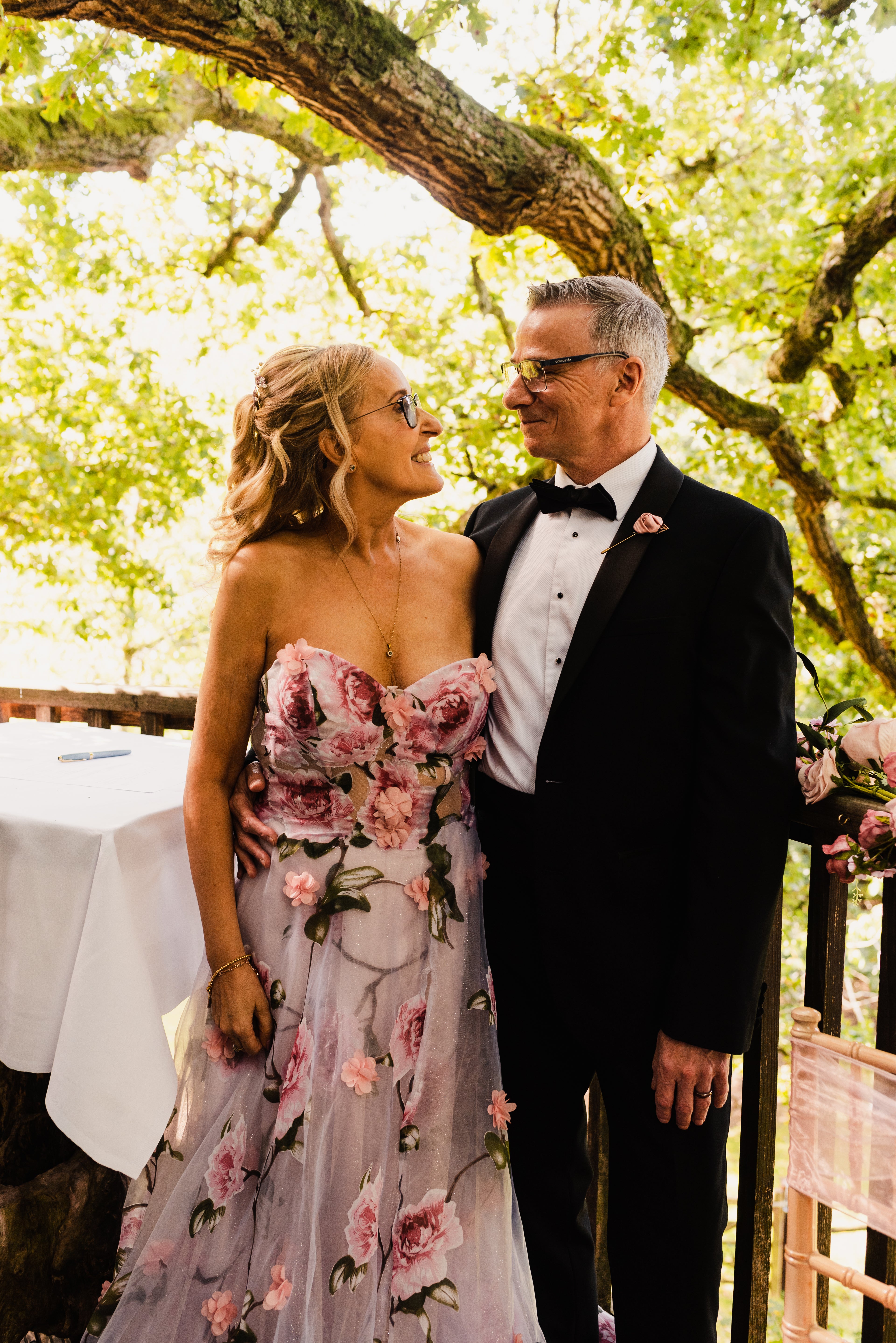 After searching online and finding nothing that felt right, Clare suddenly came across FairyGothMother. “I saw THE dress and I thought, well, let’s have a look. And I fell in love with it. So did everyone. The amount of comments on the day and from friends, people are still raving about it. They said it was so me. I matched the decorations to the dress, and seeing as it was a treehouse, in the woods, I felt the dress was perfect with the theme.”