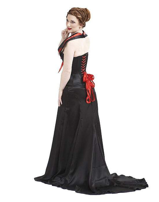 Floor length satin gown with split blouson sleeves - Cara
