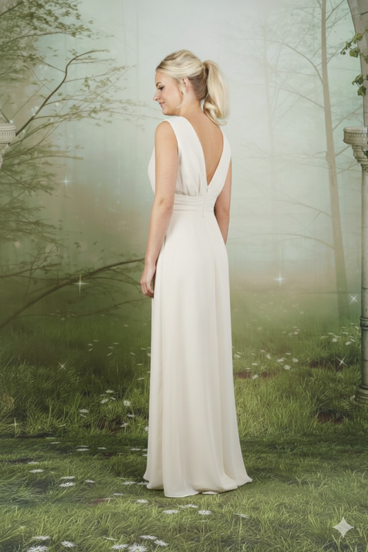 EB-Blair V-Neck Ruched Waist Jumpsuit Bridal Jumpsuit