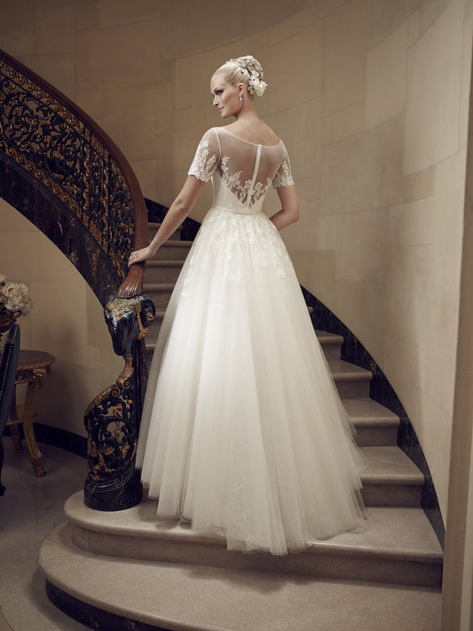 Off-shoulder fit and flare wedding dress by Casablanca Bridal ca-evelyn