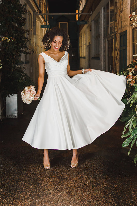 HN-Sophie – Tea-Length Mikado Bridal Gown