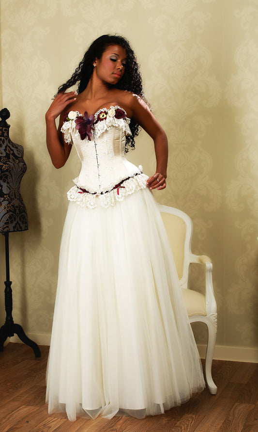 70-M24 TU-CS Ivory Satin/Tulle Overlay corset