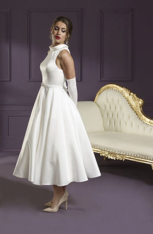 wr-dulcie-dulcie Classic Fifties styling in a tea length wedding dress