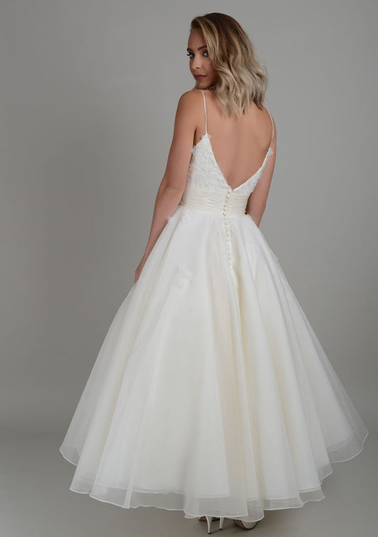 lw-pippa Silk organza strappy tea length wedding dress