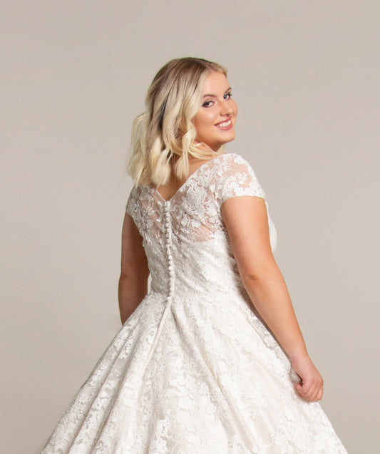 At FairyGothMother, we specialise in short wedding dresses that flatter every shape, offering made-to-order and off the peg options in sizes 8 to 30. Choose from off-the-peg designs or customise your length - because what’s ballerina length on one bride might be full-length on another!
