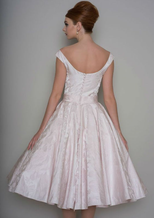 Cute brocade 50's inspired tea length wedding dress 86-nora