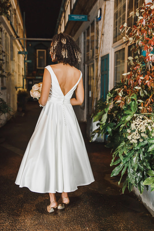 At FairyGothMother, we specialise in short wedding dresses that flatter every shape, offering made-to-order and off the peg options in sizes 8 to 30. Choose from off-the-peg designs or customise your length - because what’s ballerina length on one bride might be full-length on another!