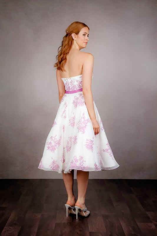 Strapless satin tea length dress in shorter Fifties style length | rd-grace