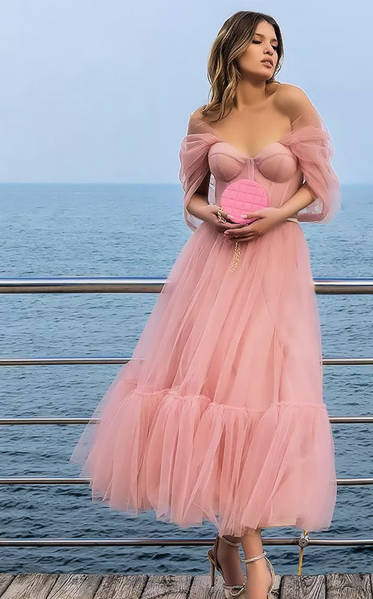 Luxury dusky rose tulle wedding dress - om-rose